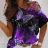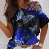 | Product Name | Retro butterfly casual oblique neck graphic tees designer | ||